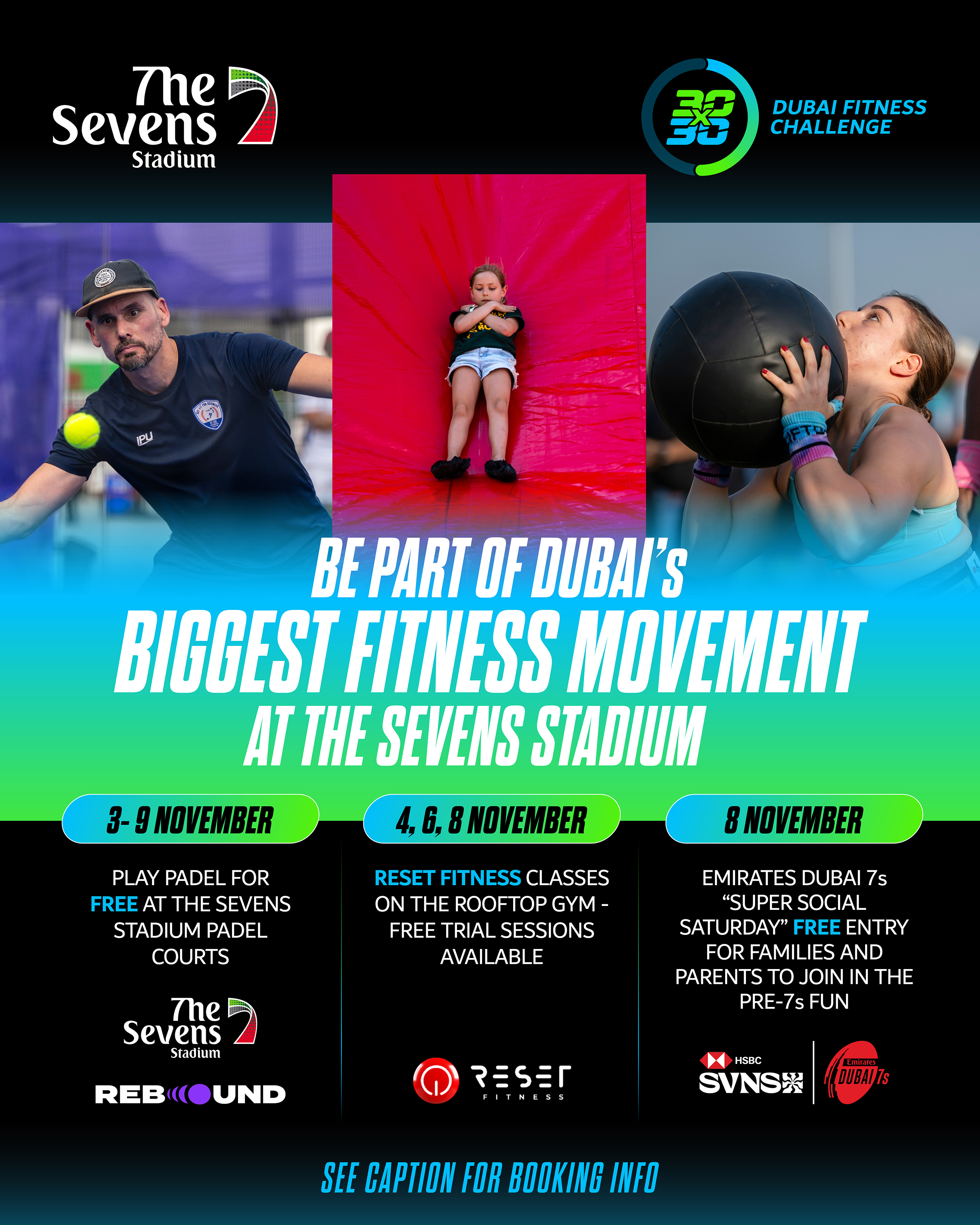 We can’t wait to welcome everyone and get moving together. Join us, get active and be part of Dubai’s biggest fitness movement at The Sevens Stadium!